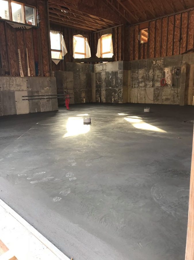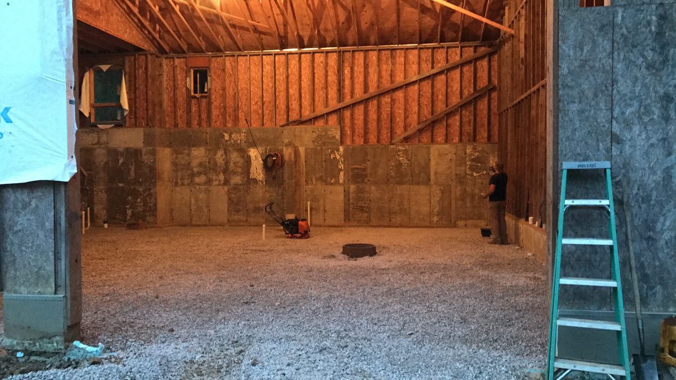Nathan got the majority of the siding on in winter/spring of 2016. We finally got to start focusing on the floor this past year. We had hoped to have the concrete poured by the end of summer in 2016, but it just didn’t happen. We had a pretty busy summer last year & finally had time to work on the floor by fall.