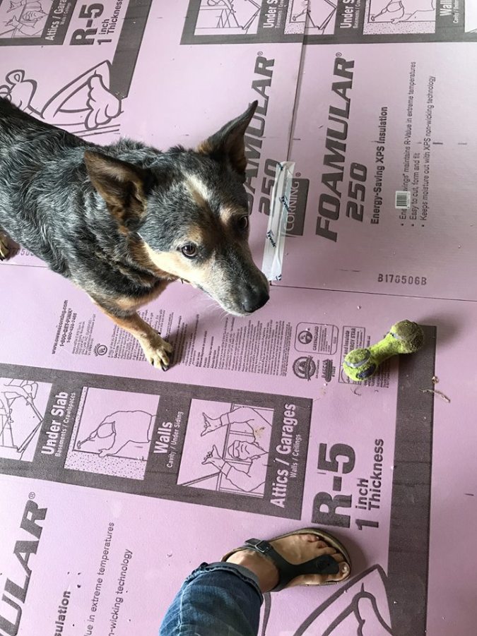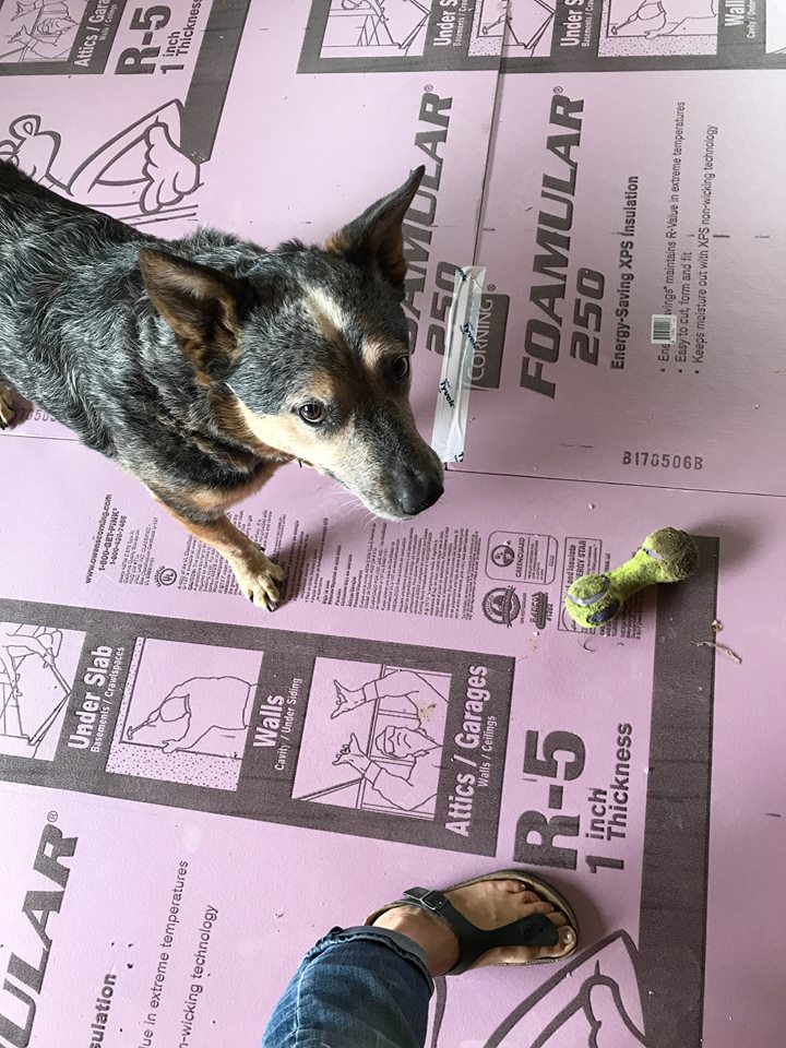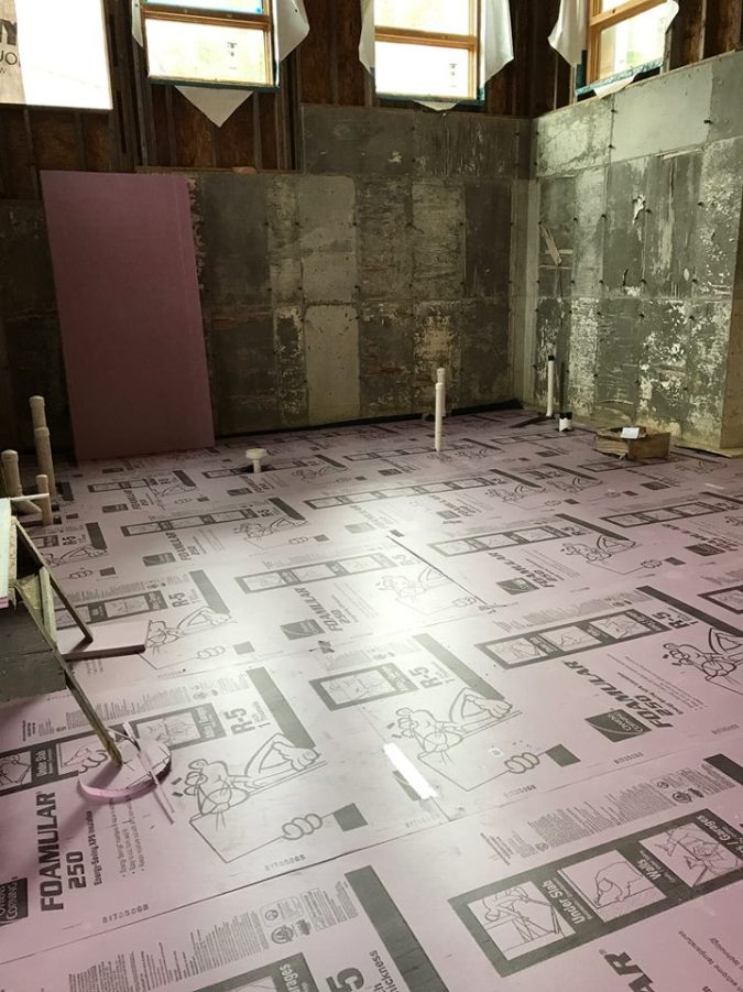We got the insulation laid in preparation for the floor heat piping.