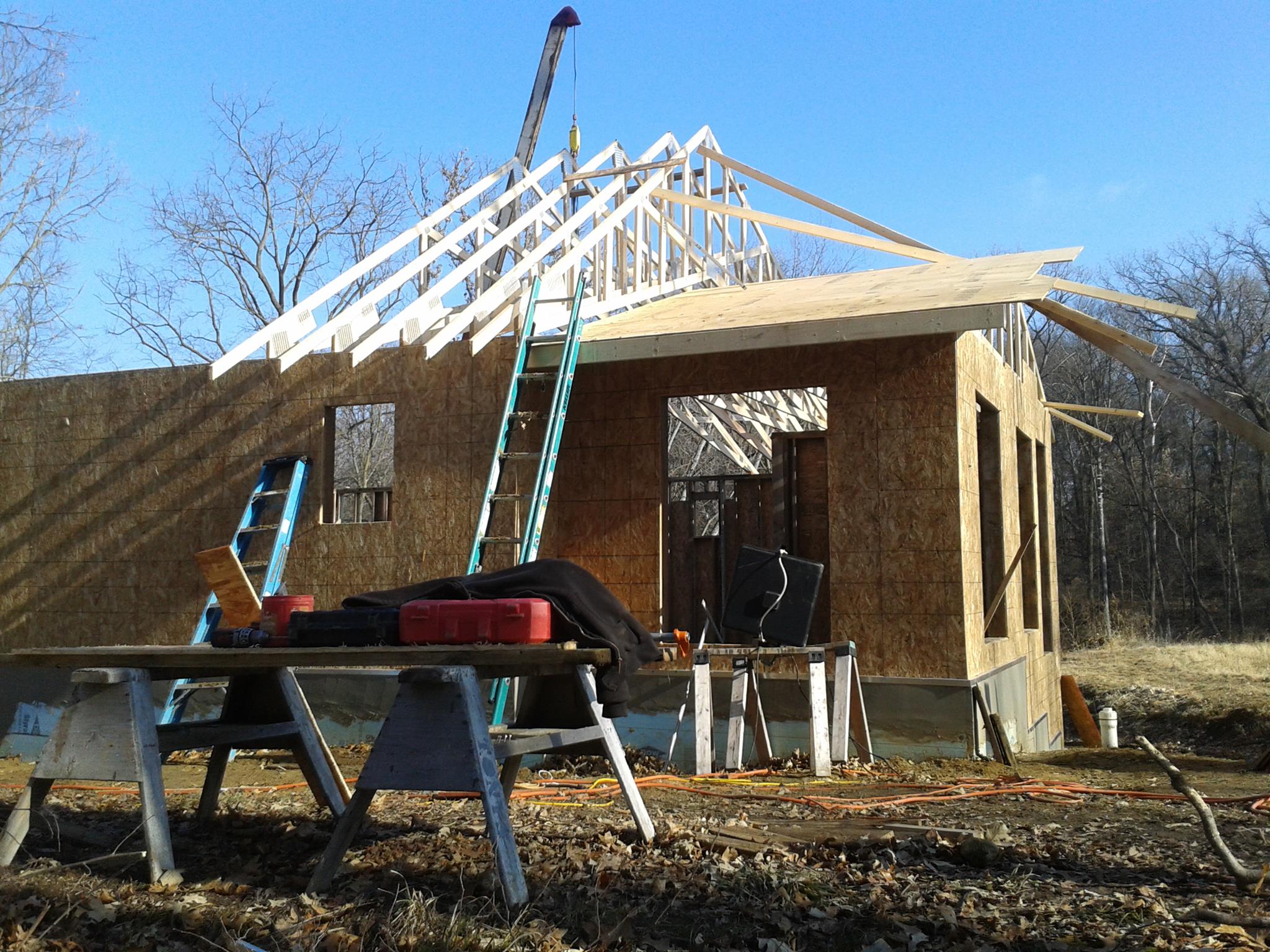 December 2014- Getting the trusses set up.