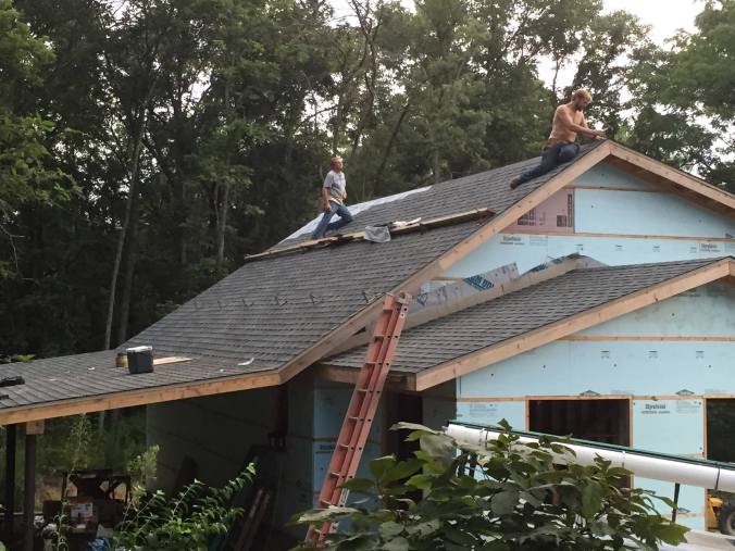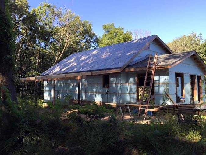 We like to take our time around here. This is most evident in our shed building process. We started this thing back in 2012 and have yet to finish it. What can ya do? Life gets crazy sometimes and you just have to get things done when you can. Nathan and his dad have done nearly all of the work on the shed by themselves, with the exception of friends helping here and there. We’ve saved quite a bit of money doing it this way and have been able to pay for supplies as we go.