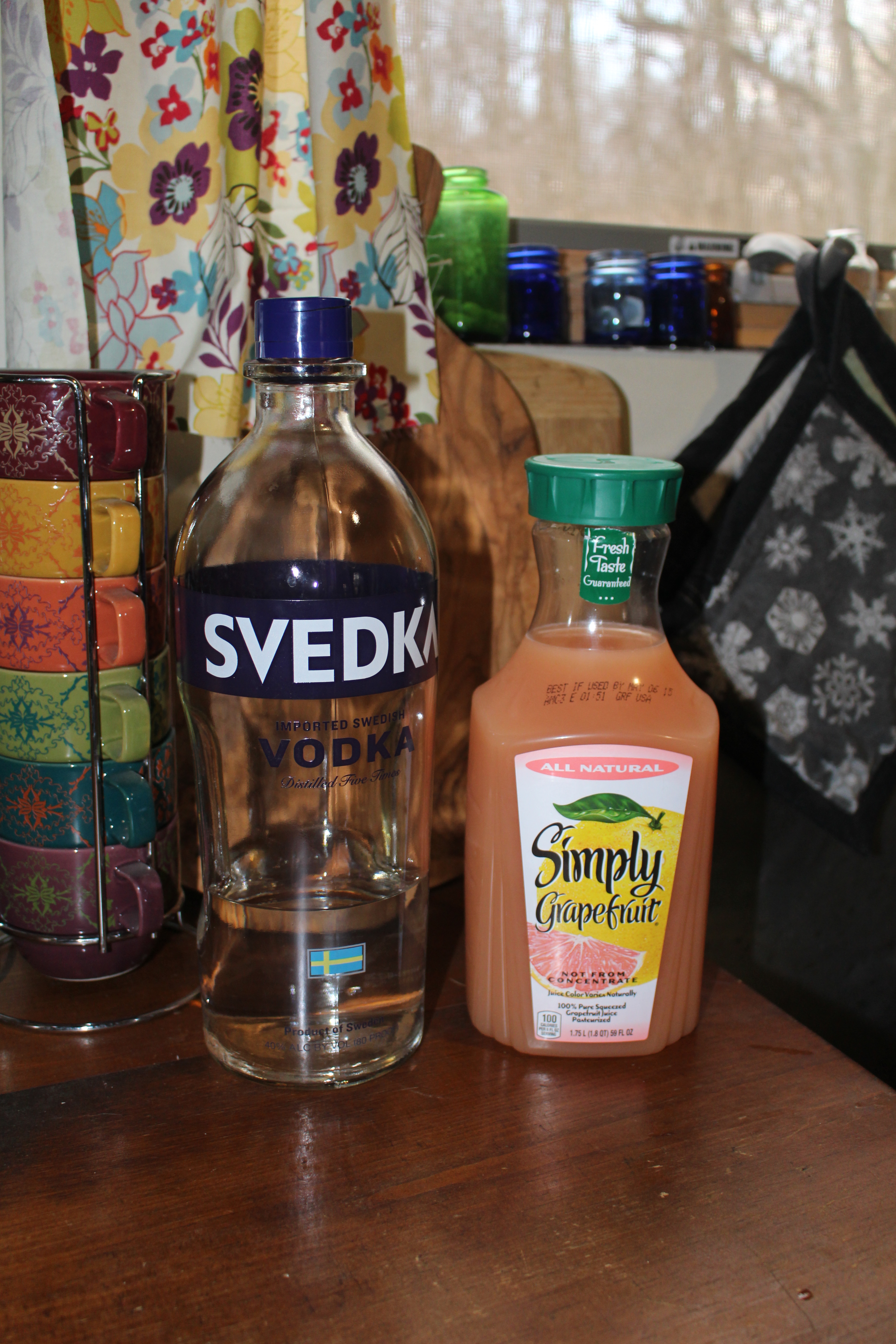 Speaking of no added sugar or other ingredients, I love Simply Beverages. They don’t add any preservatives, colors or artificial flavors to any of their juices and I think they taste so much better than other brands. (Just my opinion!) I prefer the grapefruit for this drink, but you can use any fruit juice you like. Grapefruit juice is full of vitamin C and other antioxidants. I’ve also heard that it can help to curb your appetite & raise your metabolism, among other things. I only wish I could say the same thing about vodka….hmmm….oh well! Onto the recipe!