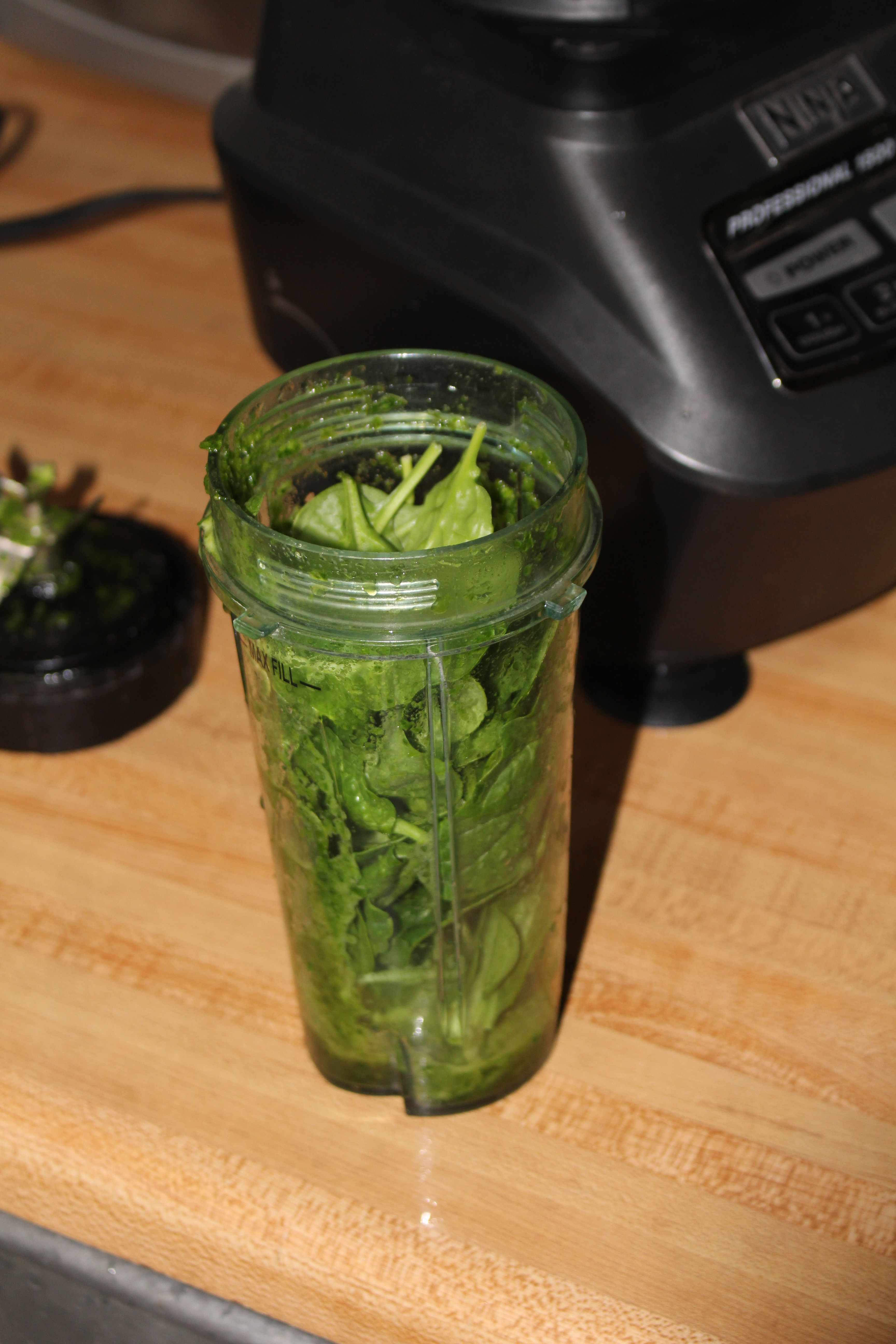 I have a Ninja Blender but any blender would work fine. Just add the greens to the blender cup, add enough liquid to get it spinning (it usually doesn’t take much), & mix it up.