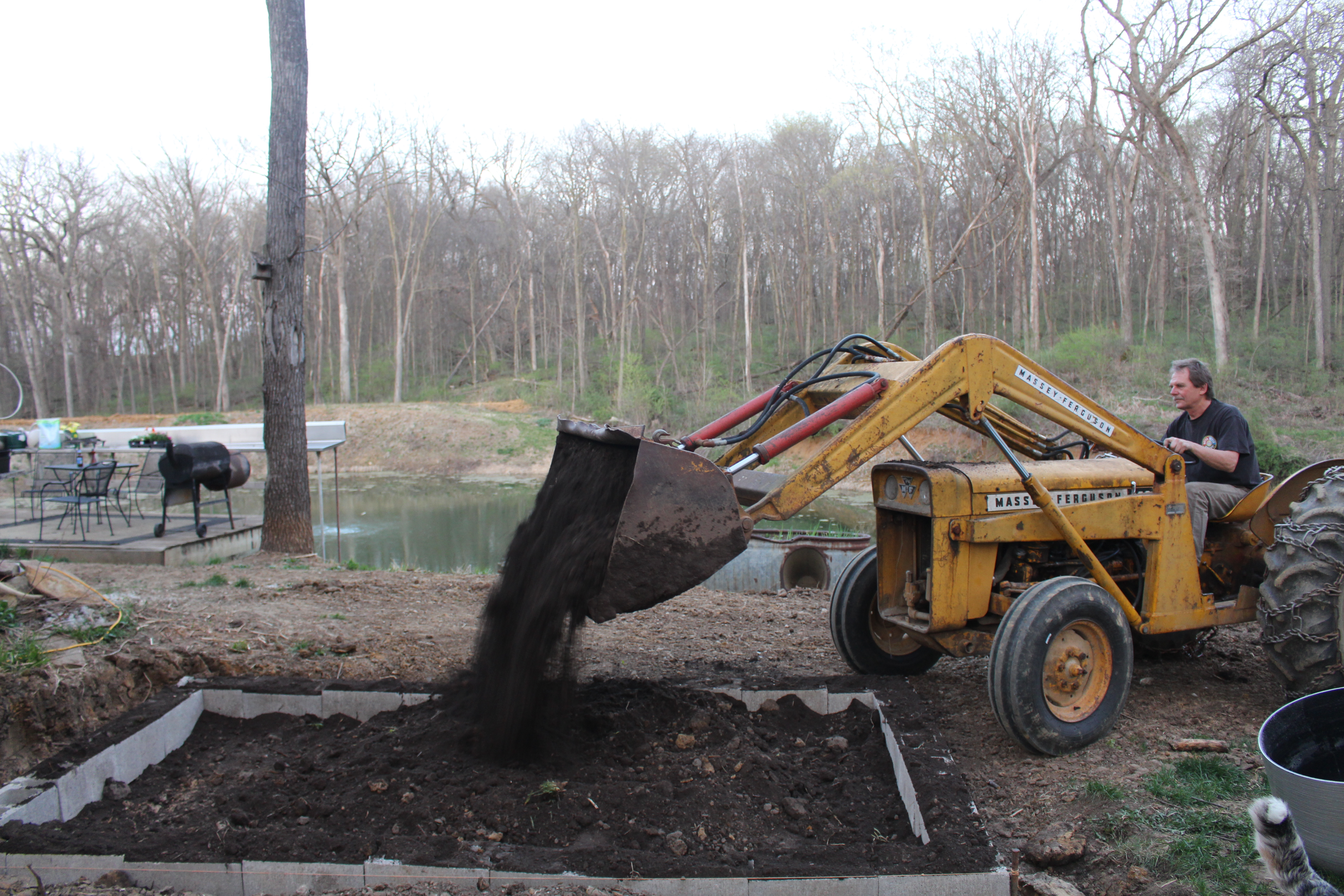 Nathan’s dad brought his tractor up to haul some dirt out of the timber.