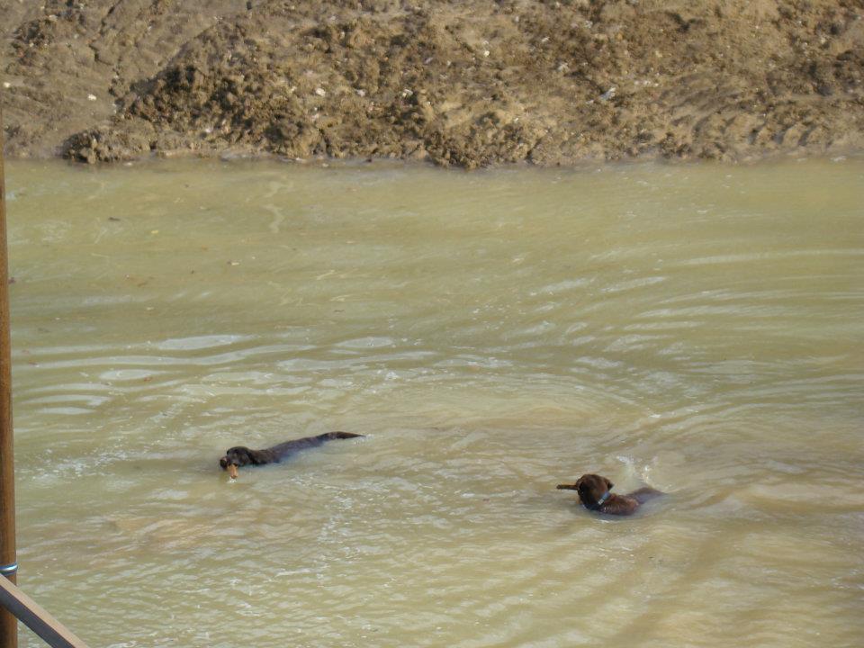 We found a natural spring when digging. The dogs jumped right in, of course.