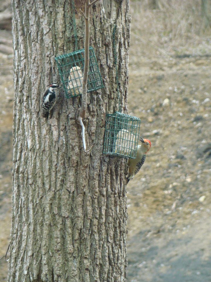 Some of our first visitors, a Downy Woodpecker & a Red Bellied Woodpecker.