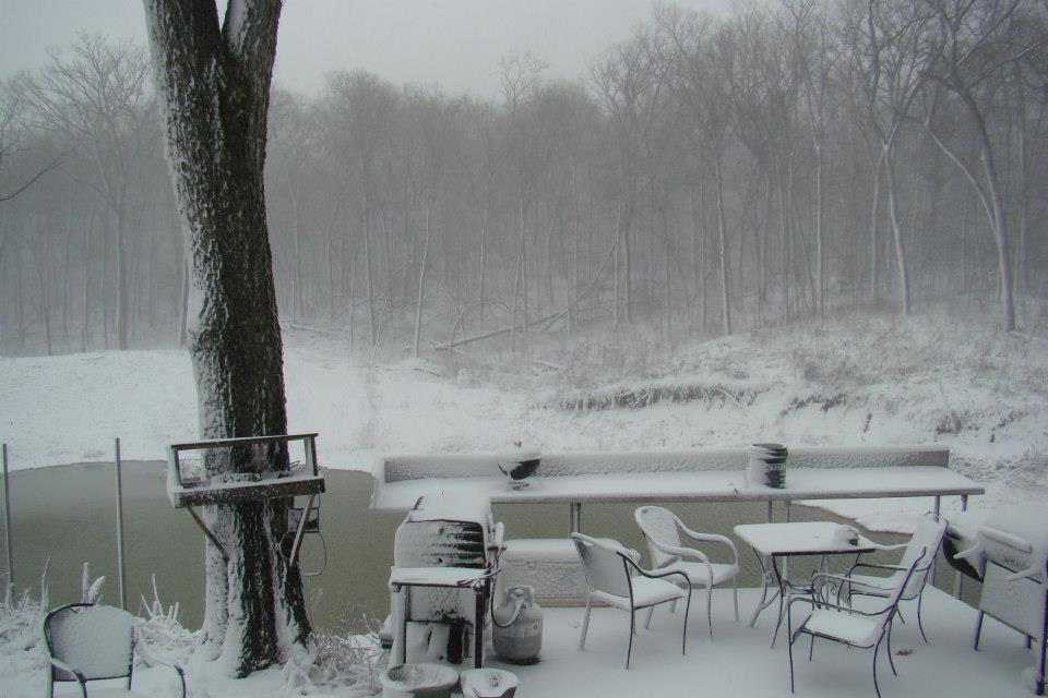 April 2013 – A huge rainstorm happened this month. The pond was literally overflowing on one side.
