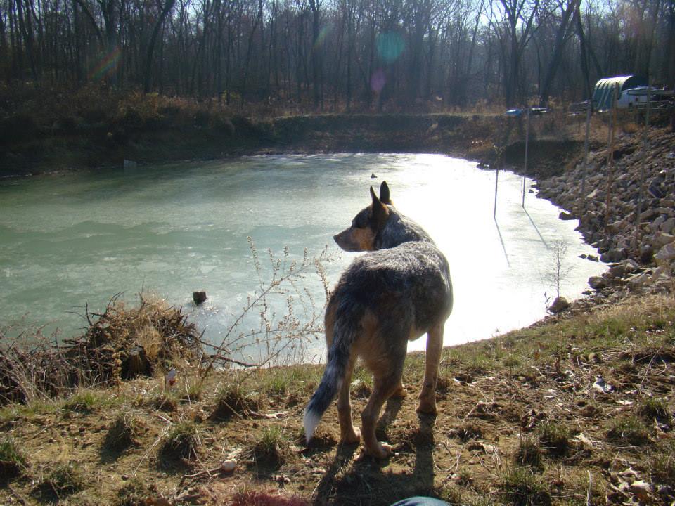 January 2012 – Jetty, freaking me out! Thankfully, the ice was pretty thick. I was still having a heart attack though.