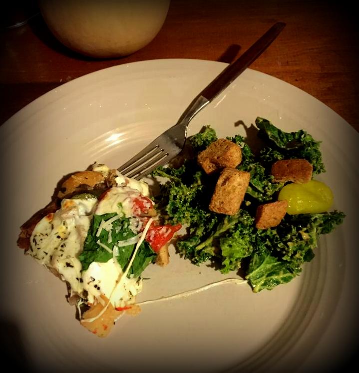 Then I added some sliced mozzarella, spinach and more seasonings and put it on the middle rack and baked it for about 12 minutes. You could also add the spinach when you’re cooking the mushrooms if you prefer. I added some more spinach on top after the 12 minutes and then broiled for a few more minutes to get the cheese a little brown.