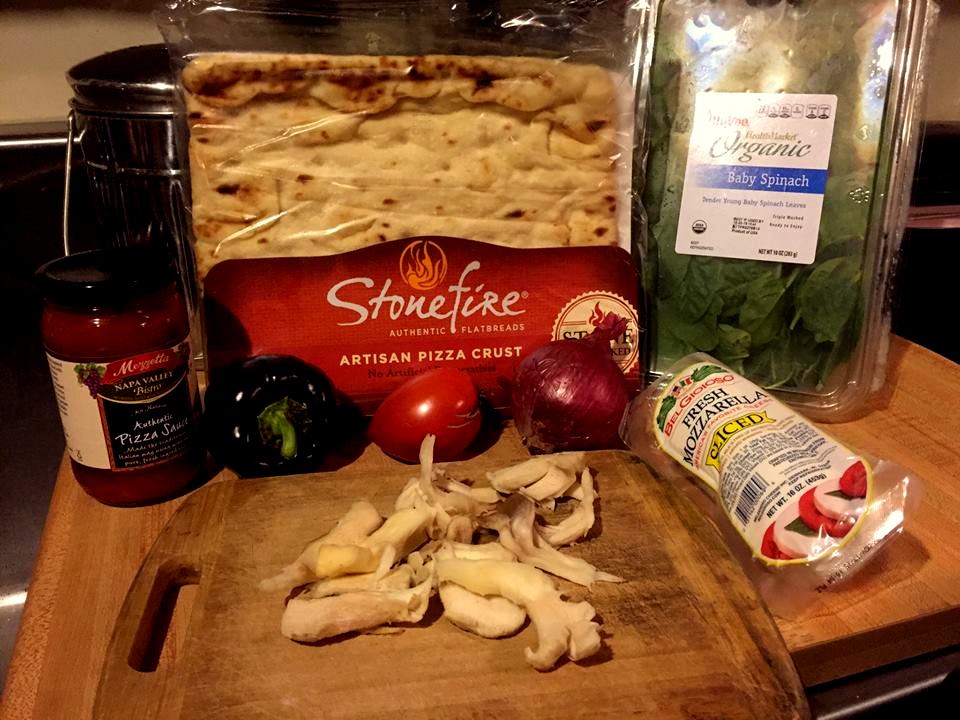 I took the easy way out and bought this premade pizza crust. I had grand plans to attempt my own crust but I have yet to perfect that art, and frankly, I was just too tired to try. Same thing with the pizza sauce. Maybe next time I’ll be more motivated.