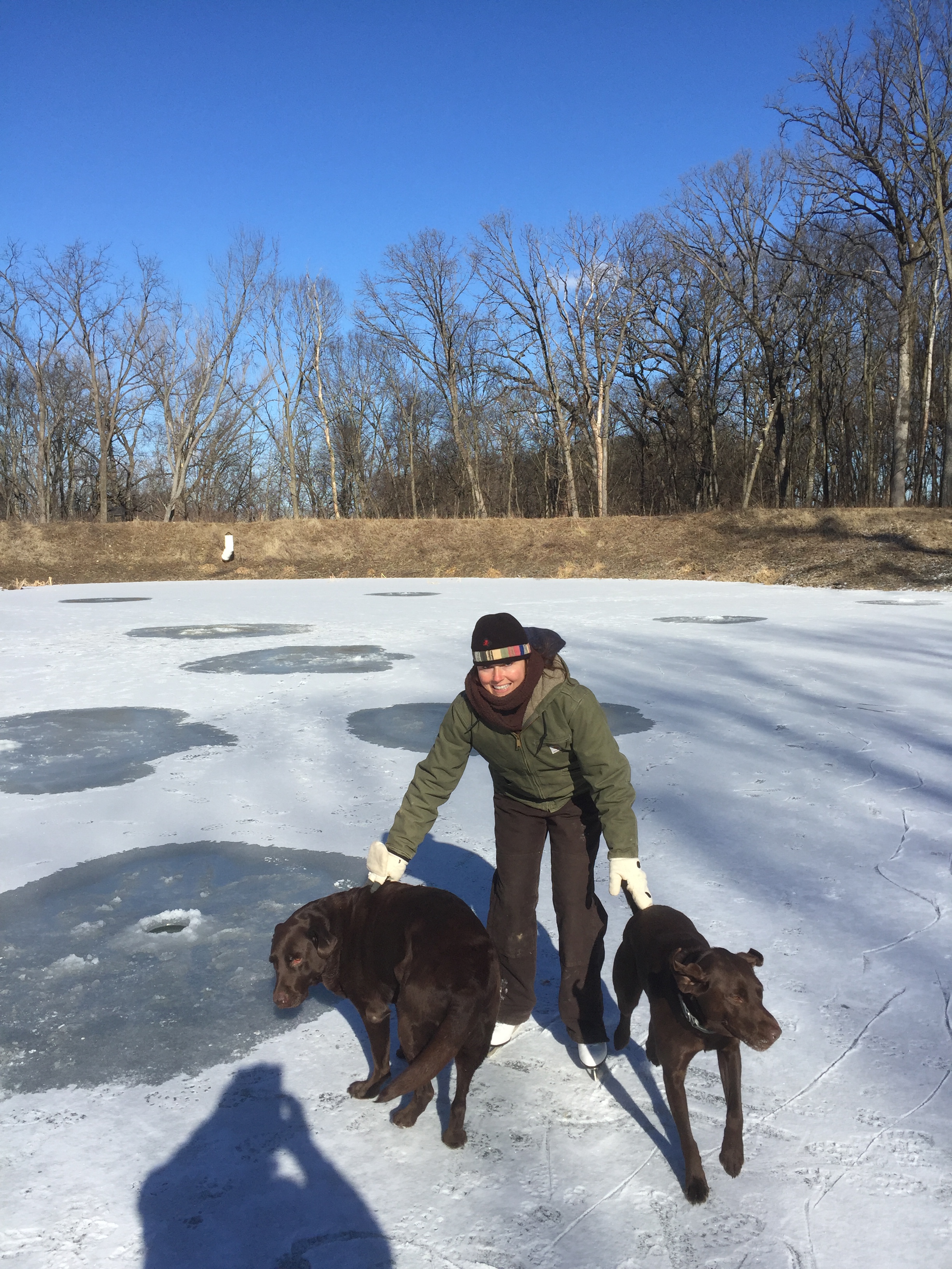 The pond froze over just enough to bust out the ice skates a couple of weeks ago. This was only my 2nd or 3rd attempt at ice skating ever. If I remember correctly, the first time I tried skating on the pond I used Izzy for balance. 🙂