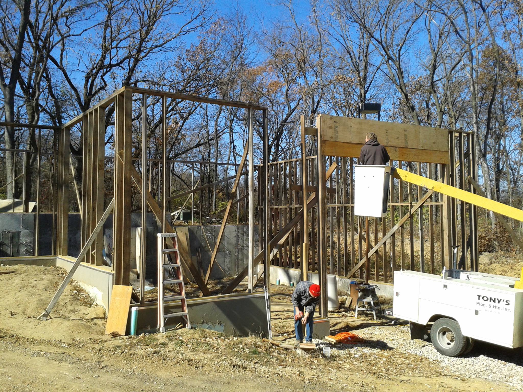 We started the building process back in January of 2012. We haven’t hired any help except when pouring the footings. Nathan and his dad are basically doing all of the work. A lot of our friends have come out to help too which has been great. Nathan has some hard working buddies who don’t mind trading labor for some beer and/or whiskey.